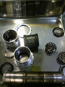 こちらは、9速時代のDURA-ACEのオーバーホール中の写真です。(ちなみにオーバーホールは当店価格21,000円です。)このBBは、現在でもトラックレーサー用で販売されています。