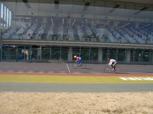 なんと・・・なかむら、ディスクホイールで挑んだにもかかわらず、女性にもそして本日ピスト&バンク初体験の方にも負けてしまいました・・・。
