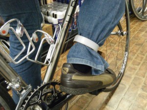 普段着で乗ると、どうしてもズボンの裾が気になったり、ひっかかってしまったことはありませんか。 でもあんまり本格的な格好は嫌だーという方、こんなバンドはいかがでしょう。