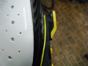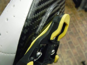 この「クリートウェッジ」は、本来はシューズにカントをつけるものなのですが、互い違いに装着することによって、純粋にかさ上げすることにも使えます。