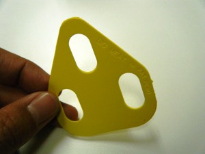 以前使っていたシューズでは、店長オリジナルの部材で調整をしていたのですが、その厚みを測ってみると、約1.5mm。