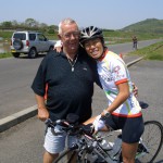 急遽、店長はコル・スチュワートコーチと伴走車でご一緒いたします。