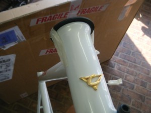 本日到着のオーナー様フレームは、クロモリのLASERというモデル。