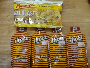 補給は、お気に入りのジェルブラストとショッツエナジージェルのワイルドビーン4つ。