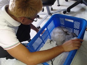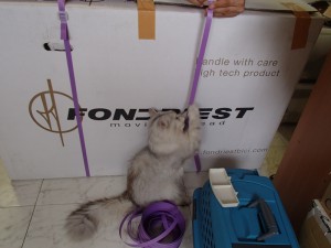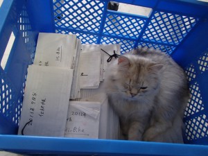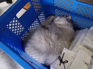 初めて入ってお気に召したのか、ほぼ一日ココで書類に埋もれてました。