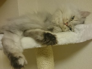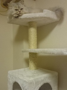お休みの日はぺルくんとのんびりすごす時間が多いのですが、買ってからあまり使ってもらえなかったキャットタワーに最近やっと乗るようになりました。