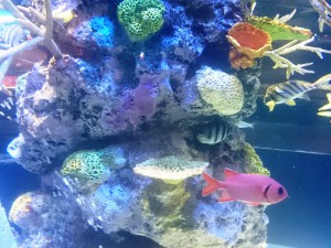 本来の目的のところは行けなかったので、その近くでですがちょうど食事の席が水槽の隣で魚さんに癒されました。