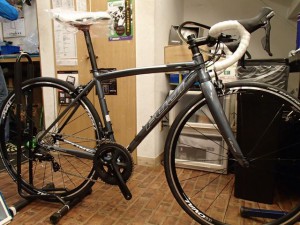 トレーニングからレースまで、このままでもガンガン走れるロードレーサーです。