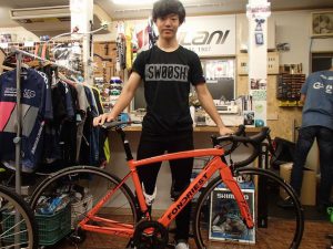 本日のご納車です。 ’17my FONDRIEST TF4 祝・高校進学おめでとうございます。 高校でバリバリ走るということで、シマノ105フル装備のTF4をおススメさせて頂きました。 ジュニアギアもスタンバイ完了でこのままレースにも対応できます。 ご活躍を期待しております!ありがとうございます。