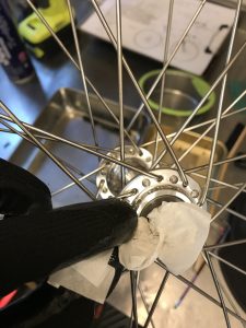 まずは、ホイールとハブの分解洗浄・グリスアップしてます。