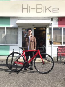 先にSPDビィンディングをクロスバイクで準備・練習していただいておりました。