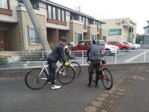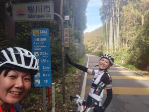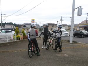 今朝は少し肌寒いスタートでした。 今日はちょっとアクシデントが多めでしたので、時間の関係もあり八郷の休憩後、女子チームは少し距離が短くなる湯袋峠、男子チームは上曽峠経由で次の休憩所まで走りました。