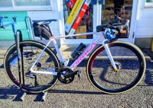 装着されるOQUOカーボンホイール、29cコルサプロ新型タイヤ、これからメインバイクですね