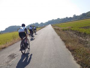 朝は風がひんやりと少しささるような寒さでしたが、だんだん暖かくなりまして朝の装備では走っていて暑いくらいでした。