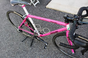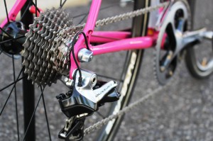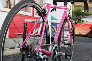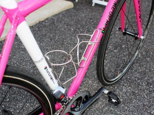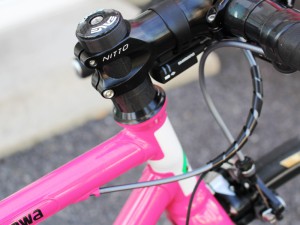 クロモリパイプの中にカーボンパイプを入れるという特殊構造により、クロモリらしいフィールと軽量化を両立させています。