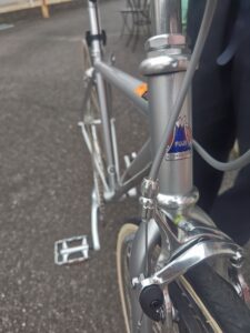 ディスクブレーキ仕様の最新フレームでありながら、ハンドル周りからシートポストにかけては、あえて「日東」のトラディショナルなシルバーパーツをセレクトしました。