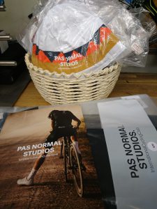 Pas Normal Staudios様のイベントですので、ウェアをお持ちの方に優先的にご案内しておりますが、どなたでもドレスコードとしてHi-Bikeから参加される方であれば一点以上、PNS Goods(パスノーマルグッズ・ウェア)を身につけていただければご参加いただけます。まだ若干名ご参加可能です。