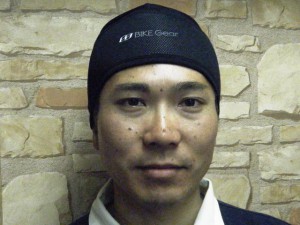 さっそく、ウォームキャップをスタッフ塚田が購入していたので、かぶってもらいました。