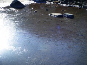 休憩ポイントでは池に氷が張ってました・・・。